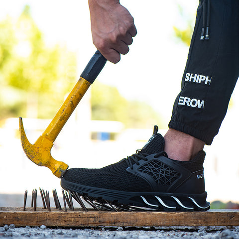 European standard steel midsole can resist 1100N puncture perfect for hazardous work around broken glass and sharp nails