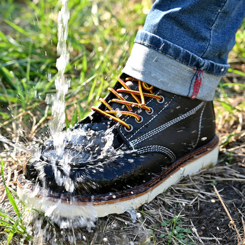 The water repellent leather keeps the boots dry from water splash or wet environment. The unlining leather keeps the boots cool fresh instead of sticky hot.
