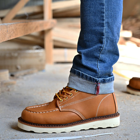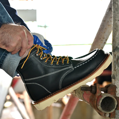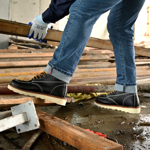 Work Boots offer goodyear welt construction that can do unlimited sole replacement. Also, they provides 2.0MM thickness oil full grain leather to protect your feet. Lastly, they have oil resistant slip resistant light weight wedge sole for traction.