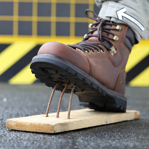Built with European standard steel midsole can resist 1100N puncture in hazardous work around broken glass and sharp nails