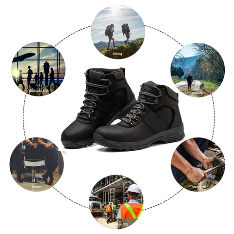 MUTI-FUNCTIONAL: composite toe shoes for those who working in the tough working environment; exploitation site, forging workshop, electric power industry, auto manufacturing, construction and machine manufacturing. Also it can be used in daily life.