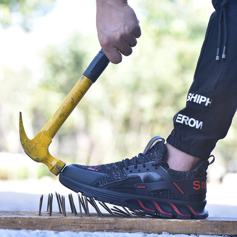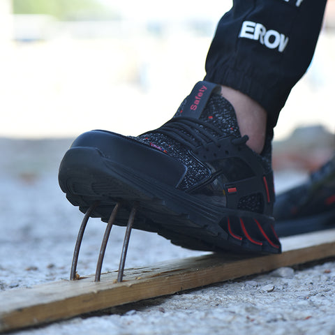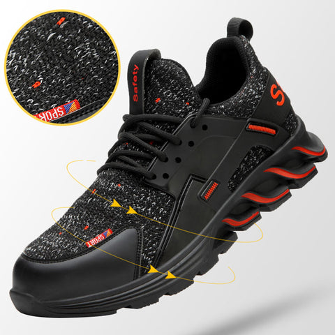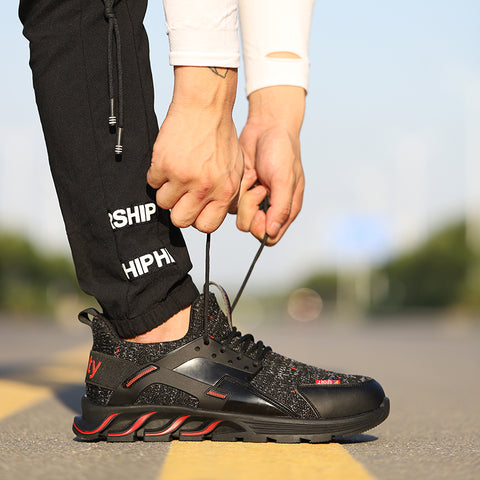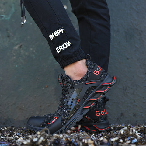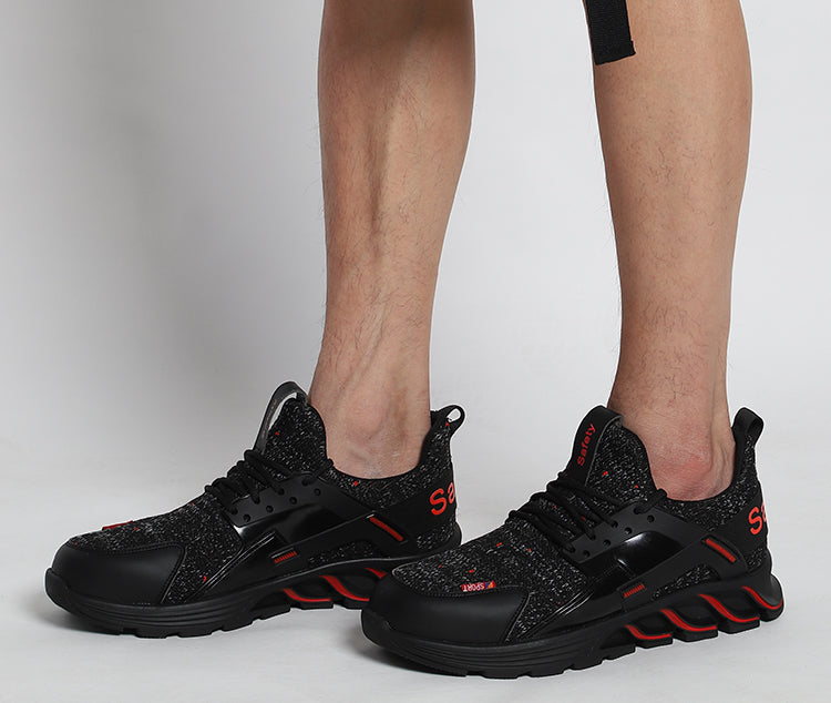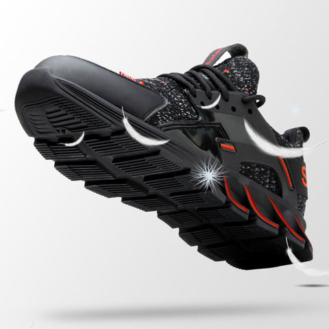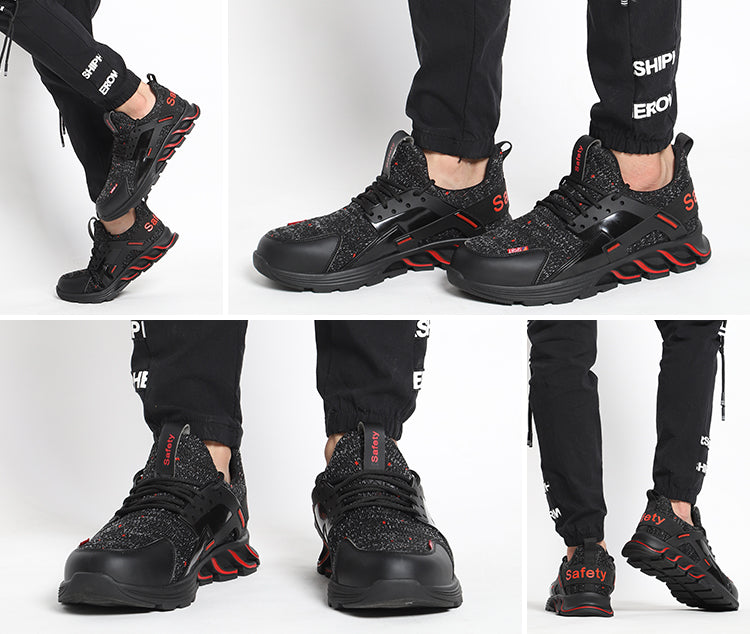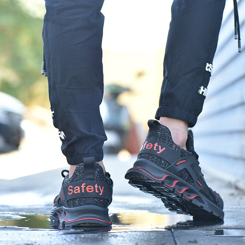 F19 BLACK RED Steel Toe Safety Shoes Lightweight for Men Women